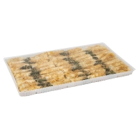 Preheat oven to 350°F. Remove from plastic trays and place on baking sheet. Bake for 7–9 minutes or until golden brown. Do not bake in plastic trays.