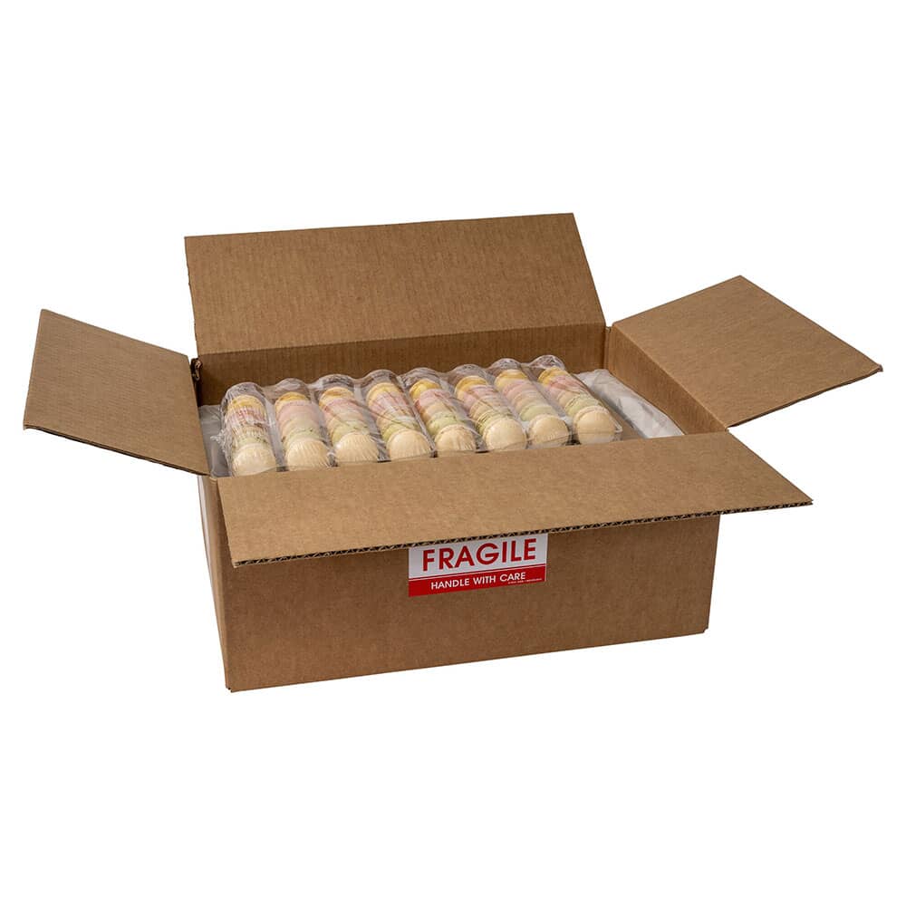 Defrost the assorted French macarons for 30 minutes prior to service, or defrost in the refrigerator.